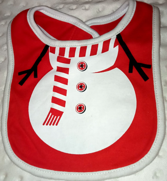 Novelty snowman themed bib.